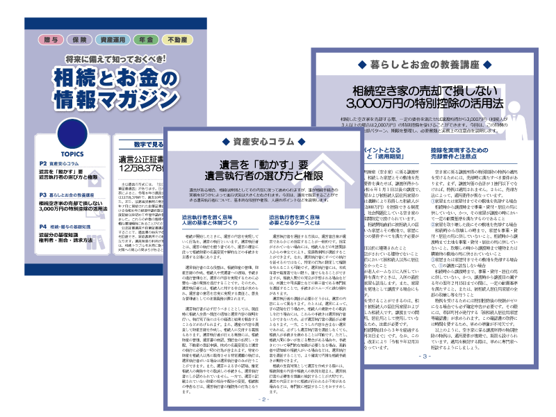 当事務所では相続や遺言に関する知って安心できる知識、最新ニュースなど役立つ情報を分かり易く伝えるメールマガジンを月一回、無料配信しています。